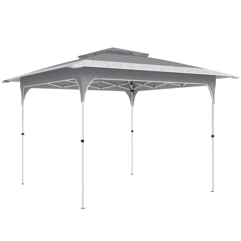 Outsunny Pavillon 3,5 x 3,5 m Wasserdicht Höhenverstellbar Pop-up Faltpavillon mit Ein-Knopf-Aufbau Doppeldach, UV 50+