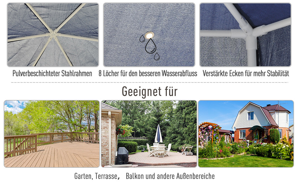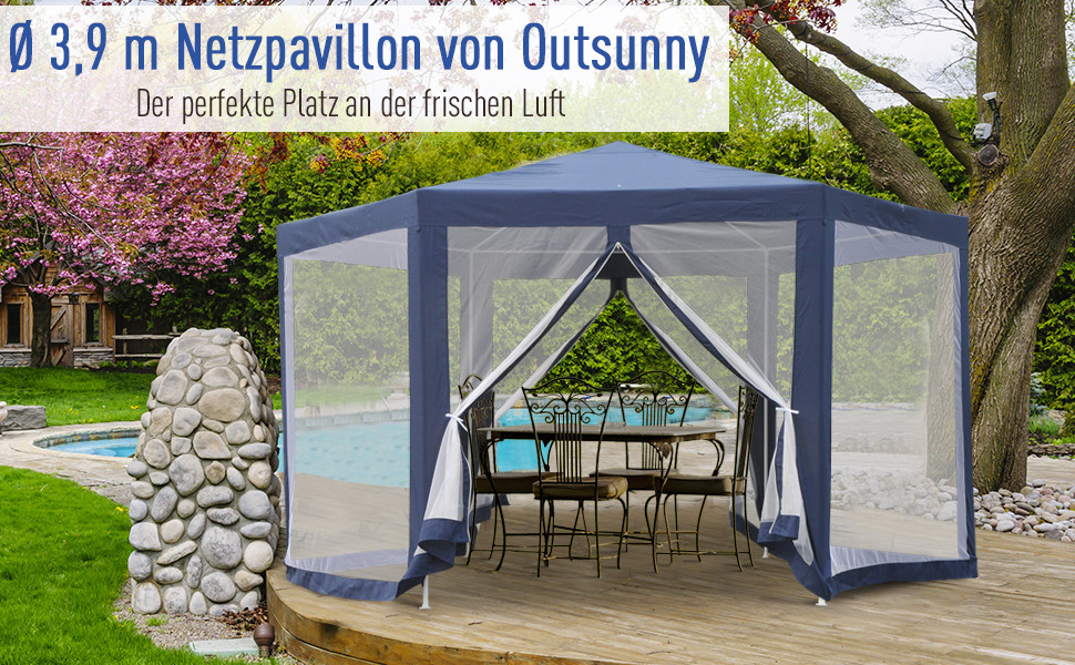 Outsunny Pavillon Gartenpavillon mit Moskitonetz Partyzelt Gartenzelt Festzelt Zelt 6-eckig Polyester+Metall Blau 394x341,2x250cm