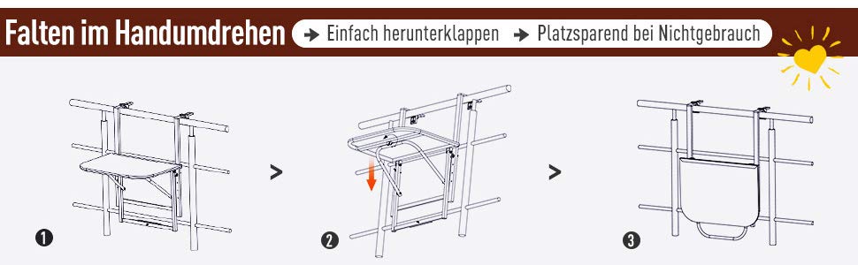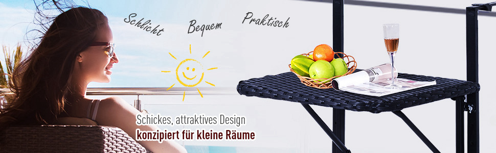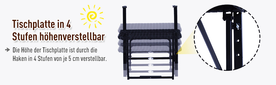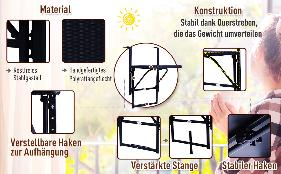 Outsunny® Polyrattan Balkonhängetisch 58x55cm Balkontisch Klapptisch