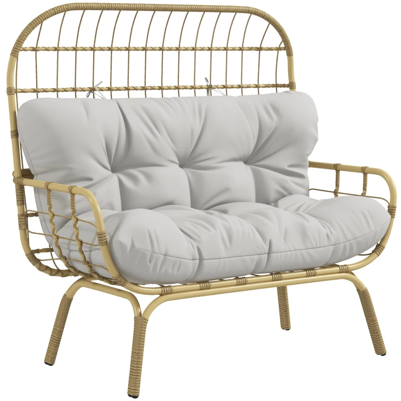 Outsunny Rattansessel Outdoorsessel, wetterbeständig, 126 cm x 72 cm x 126 cm, Natur + Grau
