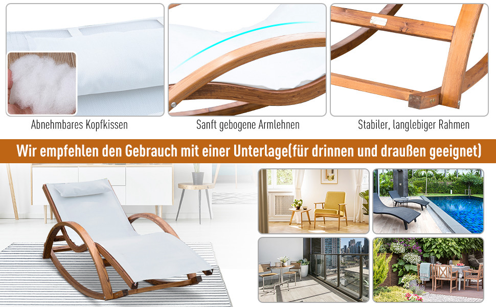 Outsunny® Schaukelstuhl Sonnenliege Holz Schwingstuhl