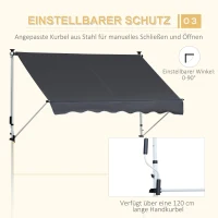 Outsunny Markise Klemmmarkise Sonnenschutz Faltarm Handkurbel Balkon Alu Grau 2x1,2m