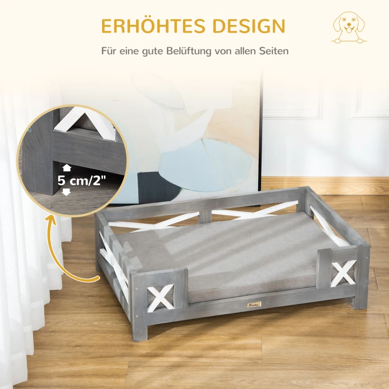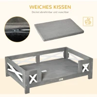 Pawhut Haustiersofa Hundematte Katzensofa Hundecouch Hundebett mit Kissen Indoor modernes Sofa für kleine und mittelgroße Hundesofa weich gepolstert waschbarer Bezug Kiefernholz Grau 80 x 55 x 23 cm