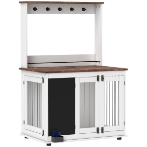 PawHut Hundebox mit Verriegelungstür, abnehmbares Kissen, gute Belüftung, Stahl, 86x60x70 cm, Weiß+Grau