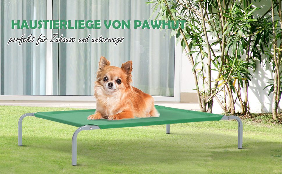 PawHut® Haustierbett | Haustierekissen | Metall, Textilene | 89 x 58 x 20 cm | Grün, Silber