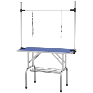 PawHut Trimmtisch für Hunde Hundepflegetisch klappbar, Haustierpflegetisch mit höhenverstellbarem Galgen, Schlingen, Netzkorb, Schertisch bis 150 kg, 90 x 60 x 75 cm, Schwarz