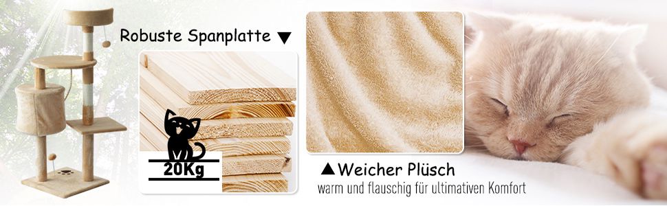 PawHut Katzenbaum Kratzbaum Schlafhöhle Kletterbaum mit Spielbaum Treppe Schlafplatz für Katzen 4 Schichte Beige 40 x 40 x 114 cm