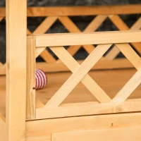 PawHut Katzenhaus mit Asphaltdach, 2-stöckig, Katzenhütte mit Balkon, Katzenvilla mit Treppe, Massivholz, Natur, 77 x 50 x 73 cm