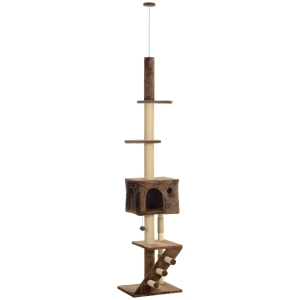 PawHut Kratzbaum mit Hängematte, inkl. Deckenspanner, Deckenhoch, 40 cm x 40 m x 250 cm, Grau + Cremeweiß