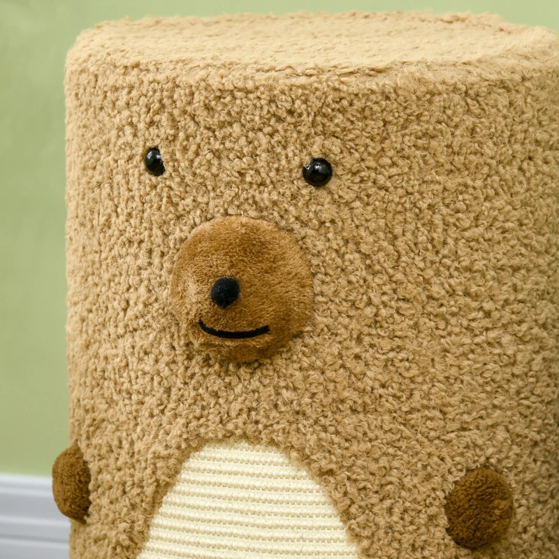 PawHut Kratztonne im Bärendesign, 2 Katzenhöhlen, 1 Kratzfläche, Weiß + Braun