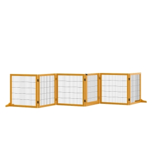 PawHut Hunde Absperrgitter Türschutzgitter mit 2 Stützfüßen, klappbares Schutzgitter mit Konfigurationsgitter, umkehrbarer Tür, 4 Stücke, Kiefernholz Weiß 215 x 38 x 75 cm