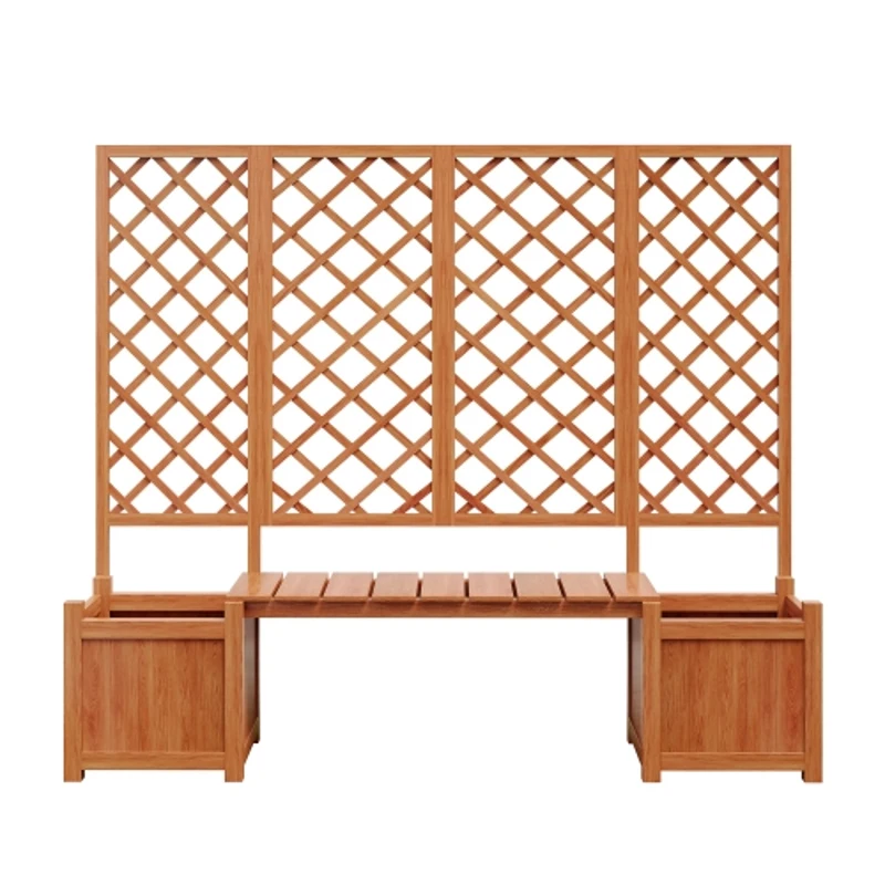 Pflanzkübel mit Spalier und Sitz für Garten, Hof, Terrasse, für Kletterpflanzen, 169 x 42 x 145 cm, Braun