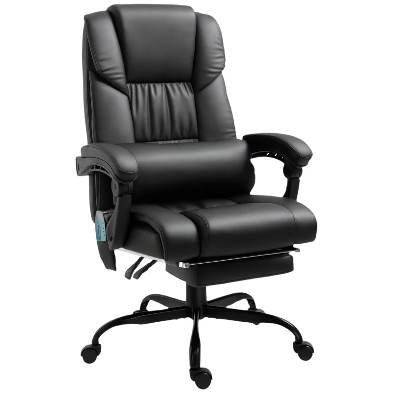 Vinsetto Bürostuhl Ergonomisch mit Massagefunktion Schreibtischstuhl mit Fußstütze, Hoher Rückenlehne, Lendenstütze Schwarz