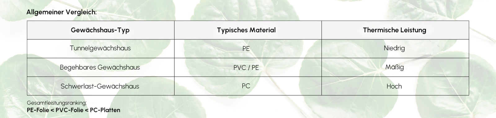 Die Isolationsleistung eines Gewächshauses wird maßgeblich durch die thermischen Eigenschaften der verwendeten Eindeckungsmaterialien bestimmt.